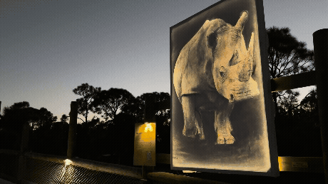 Project Holocene showcases large, illuminated paintings of endangered species that use a timed light-fading effect to visually represent the animal's IUCN Red List status and highlight its fragility. This unique blend of art and technology aims to raise critical awareness about conservation and biodiversity during the Zoo's after-dark transformation.